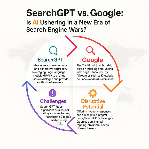 הבינה המלאכותית (AI) פרצה מזמן את גבולות המדע הבדיוני והפכה לכוח משנה מציאות, המעצב מחדש תעשיות רבות, ובראשן הזירה הדיגיטלית. אחת הזירות המרכזיות בהן השפעה זו מורגשת בעוצמה היא עולם מנועי החיפוש. במשך למעלה משני עשורים, גוגל ביססה את מעמדה כשליטה כמעט בלעדית בשוק החיפוש העולמי, עד כדי כך שהפכה לשם נרדף לפעולת "חיפוש מידע ברשת". אולם כעת, מתחרים חדשים, המצוידים ביכולות AI מתקדמות, מאתגרים את הפרדיגמה המסורתית ומבטיחים עידן חדש של אינטראקציה עם מידע. הדו-קרב המרתק ביותר בזירה זו מתנהל בין ענקית הטכנולוגיה גוגל לבין SearchGPT (המוכר גם כיכולות החיפוש המובנות של ChatGPT) מבית OpenAI.