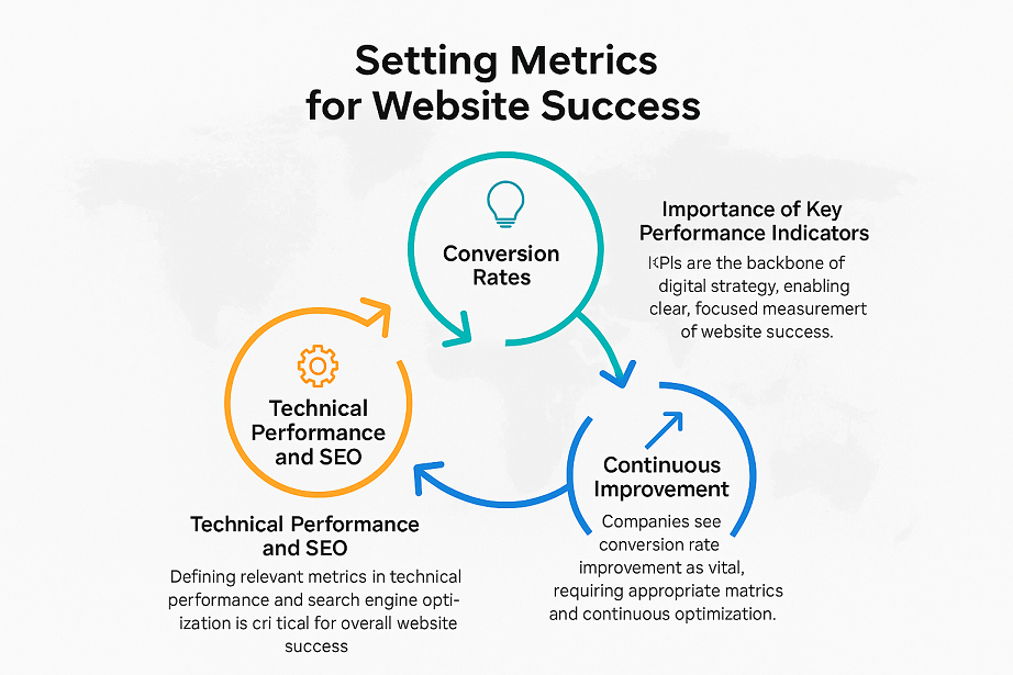 כדי לבנות אסטרטגיה דיגיטלית אפקטיבית ומניבה תוצאות, יש להגדיר מדדי הצלחה מדויקים ורלוונטיים המתאימים באופן ספציפי למטרות העסקיות הייחודיות שלכם. מדדים אלו יכולים לכלול שלושה מרכיבים עיקריים המשפיעים באופן ישיר על הצלחת האתר שלכם: תנועה (Traffic) איכותית לאתר, שיעורי המרה (Conversion Rates) משמעותיים ומעורבות משתמשים (User Engagement) עמוקה.