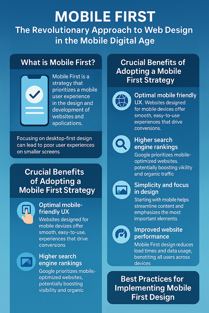 Mobile First היא פילוסופיית עיצוב ובניית אתרים ואפליקציות הממקדת את מלוא תשומת הלב והמשאבים במשתמשים הגולשים באמצעות מכשירים ניידים כבר משלב הקונספט הראשוני. גישה זו הפכה לקריטית ובלתי נמנעת לנוכח העלייה המטאורית בשימוש במובייל, המהווה כיום למעלה ממחצית (ובמקרים רבים אף יותר) מכלל תעבורת האינטרנט העולמית (מקור: StatCounter). בעבר, הפרקטיקה המקובלת הייתה לעצב תחילה את גרסת שולחן העבודה המלאה והמורכבת של האתר, ורק בשלב מאוחר יותר לבצע התאמות (לעתים חלקיות) עבור מסכים קטנים יותר של מכשירים ניידים. אולם, לנוכח השינויים הדרמטיים בדפוסי הגלישה של המשתמשים, גישה מיושנת זו אינה יעילה ואף עלולה להזיק. כיום, תהליך עיצוב אתר שמתחיל מתוך הבנה עמוקה של צרכי משתמשי המובייל ולאחר מכן מורחב ומותאם למסכים גדולים יותר מאפשר יצירת חוויית משתמש מיטבית, עקבית ומובילה בכל נקודת מגע.