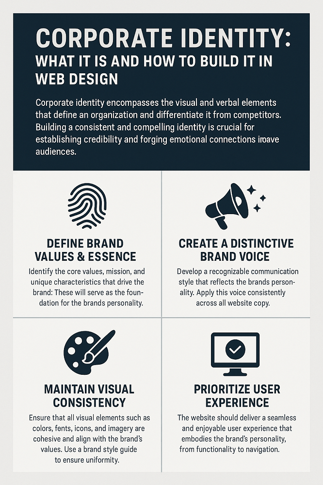 - הגדרת הערכים והמהות המותגית: הצעד הראשון והקריטי ביותר בבניית זהות תאגידית משכנעת באתר הוא הגדרת ה-DNA הייחודי של המותג – המאפיינים המבדילים אותו, המשימה המרכזית שלו, החזון העתידי שלו והערכים המרכזיים המניעים את כל פעילות הארגון. אישיות המותג, כפי שהיא משתקפת באתר, צריכה להדהד ערכים אלה בצורה אותנטית ועקבית בכל נקודות המגע עם המשתמשים.