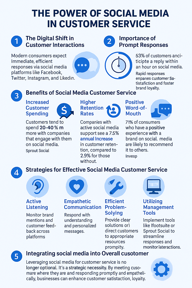 פלטפורמות המדיה החברתית המובילות, כגון פייסבוק, אינסטגרם, טוויטר ולינקדאין, הפכו לחלק בלתי נפרד ממערך התקשורת בין צרכנים לחברות. בעבר, פניות לשירות לקוחות התבצעו בעיקר באמצעות שיחות טלפון או הודעות דוא"ל. עם זאת, כיום, מספר הולך וגדל של לקוחות מעדיפים לתקשר עם עסקים באמצעות ערוצים דיגיטליים בזמן אמת. מחקר שנערך על ידי J.D. Power выявил כי 67% מהצרכנים פנו לשירות לקוחות באמצעות מדיה חברתית. שינוי זה אינו מקרי; המדיות החברתיות מציעות נוחות מרבית, מהירות תגובה גבוהה וזמינות מסביב לשעון, ומאפשרות ללקוחות לקבל מענה מידי לפניותיהם השונות.